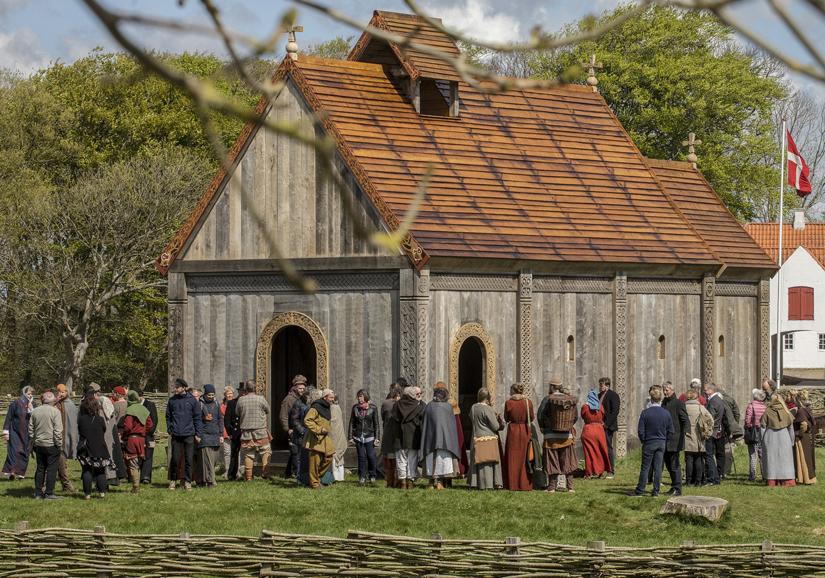 Men kun 2 km syd for byen ligger Ribe VikingeCenter, hvor man har genskabt huse og materialer fra vikingetiden. Og her indviede man i søndags (den 6. maj) en kristen kirke, der er opført.